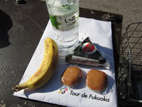 チェックポイントやエイドステーションでは、水・バナナや福岡銘菓、おにぎりなどもらえます。