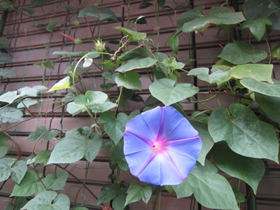 夏の間、咲かなかった、フロント窓外のあさがおが、何故か10月に