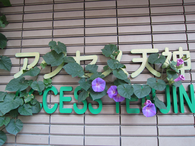 何故か今になってアサガオが満開のアクセス天神の庭で