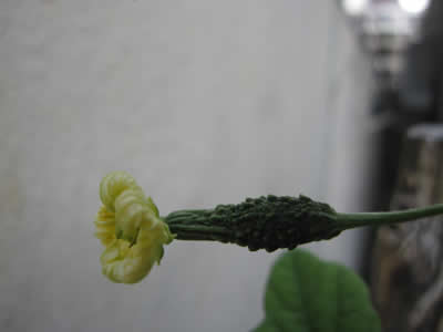 小さな小さな、2cmほどの大きさの、ゴーヤの赤ちゃんです